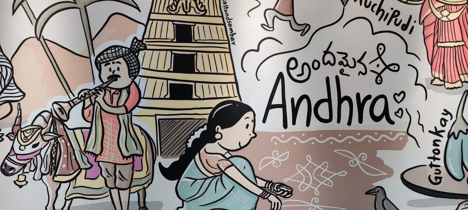Designed an Andhra themed wall mural for Techmojo's office in Hyderabad.